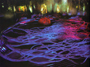 C展示場では、ホールの壁面はみがかれた金属の曲面鏡で、正面に巨大な人間の臓器の模型があり電光システムによって、生理的機能を説明しており、鏡に映し出されることにより、 超現実的な光景を作りだしていました。