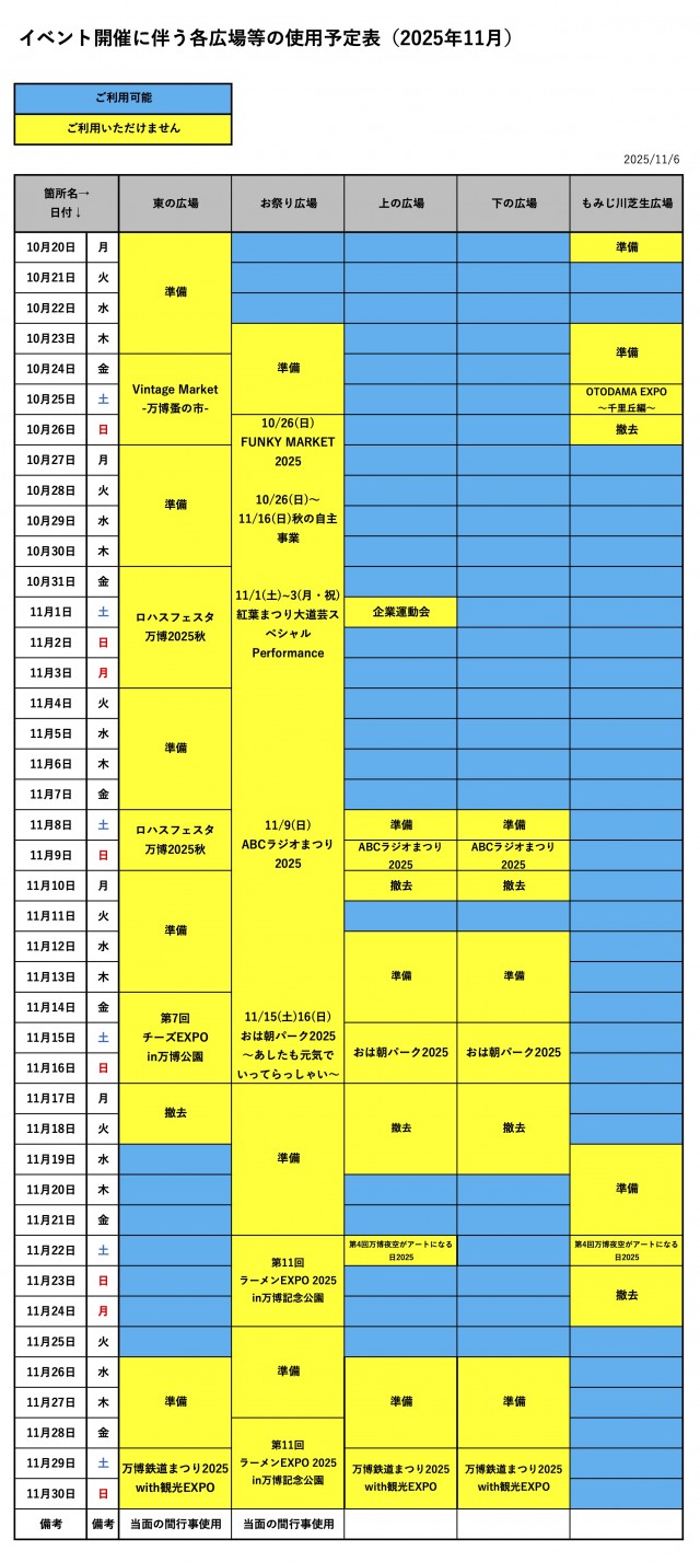 また、自然文化園内芝生広場等の使用予定を以下の通りお知らせいたします。